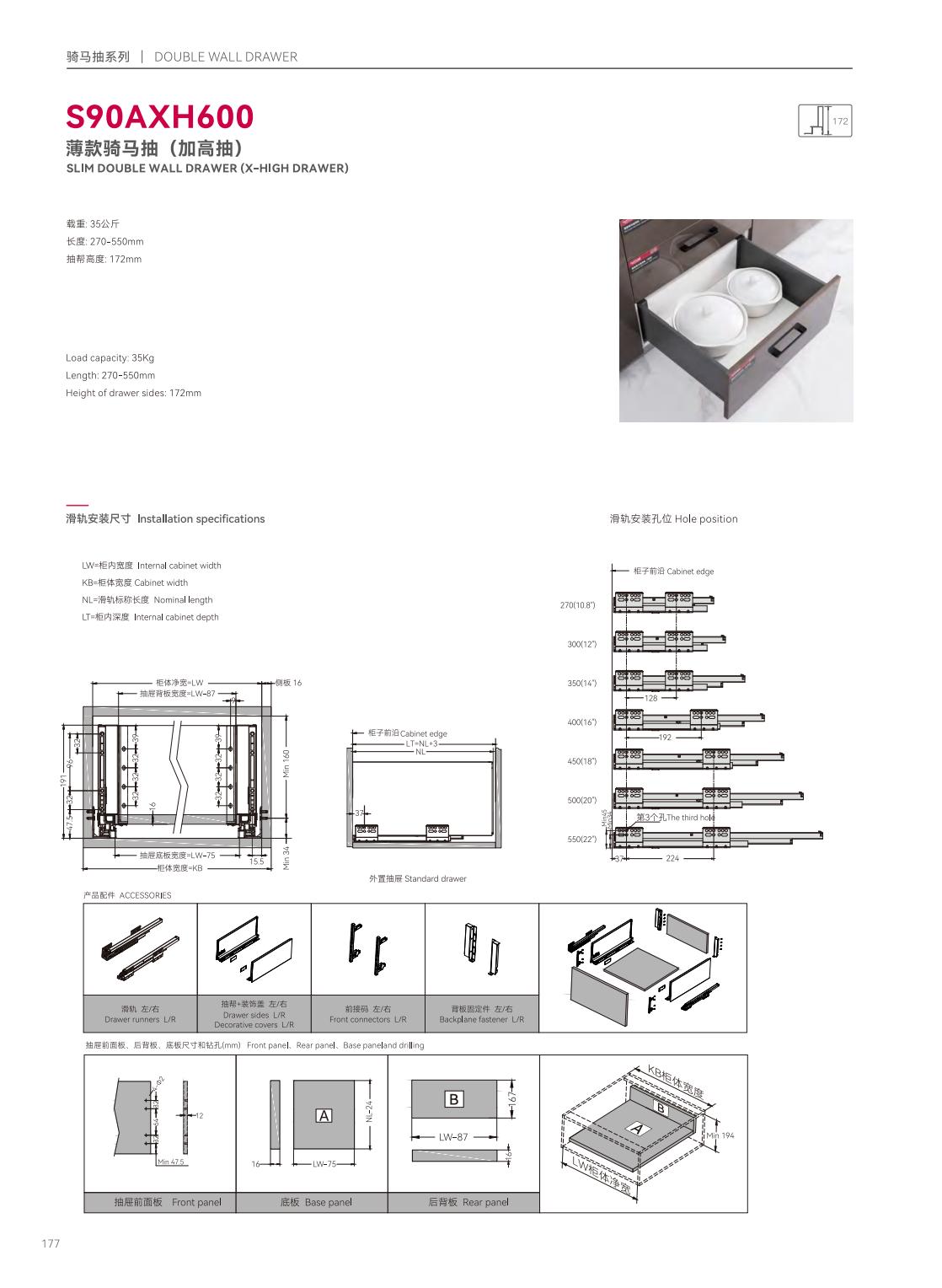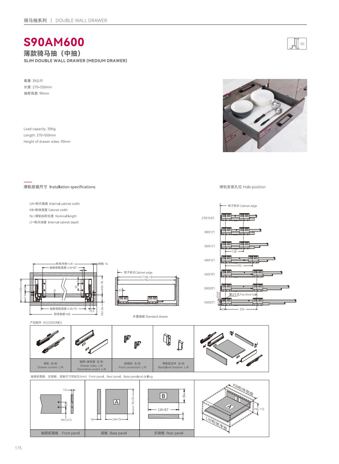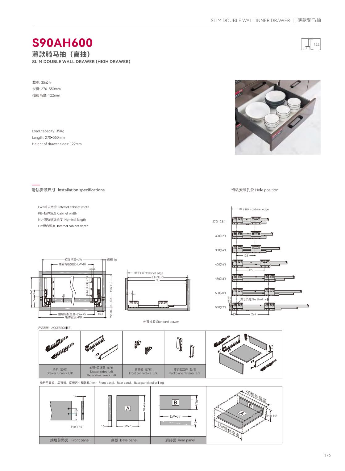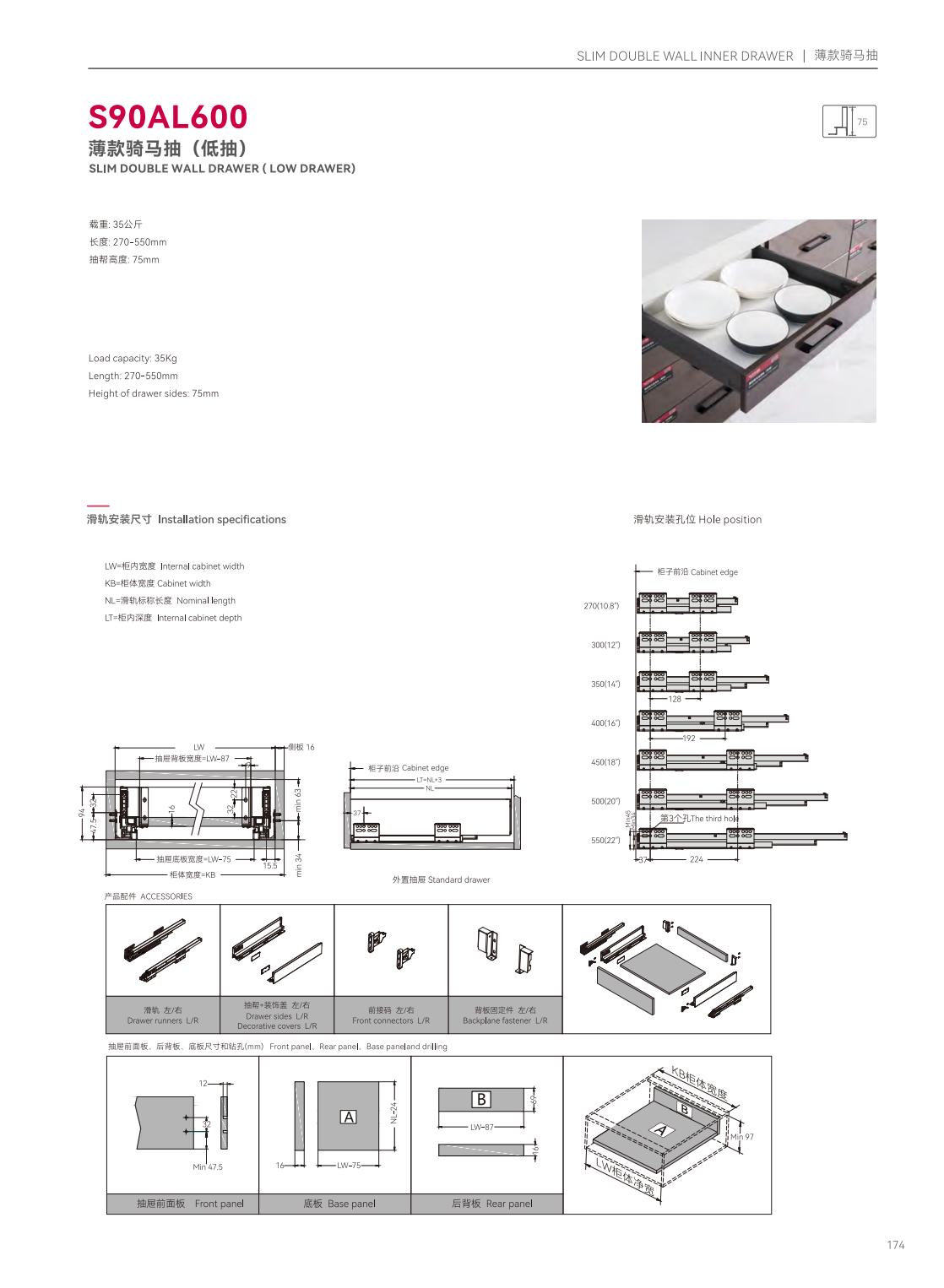 S39P601隱藏式三節(jié)反彈緩沖帶把手同步滑軌