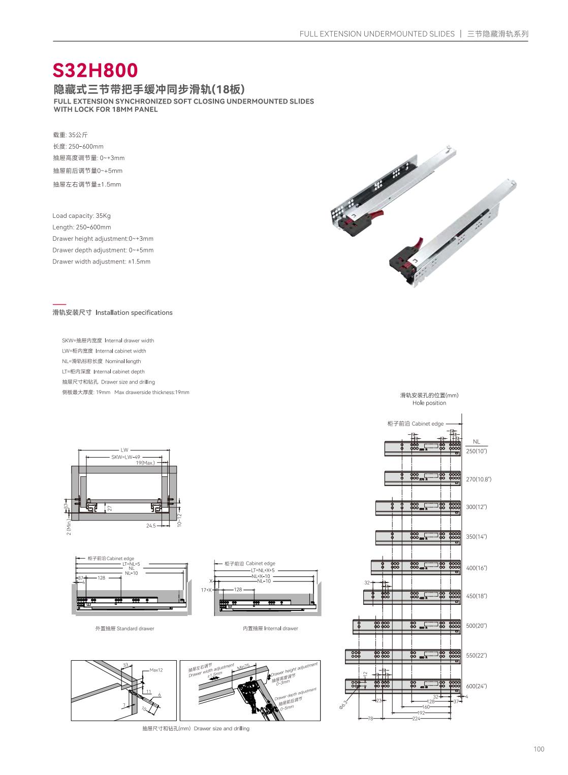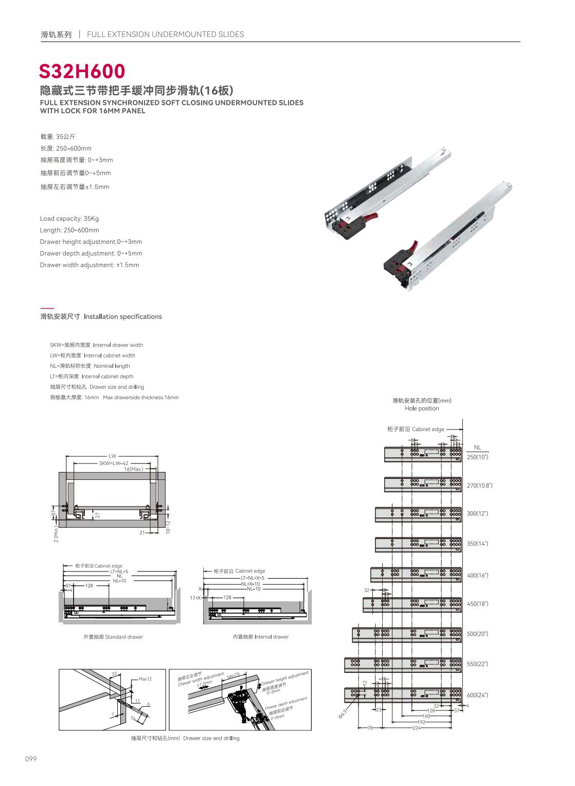 S39P601隱藏式三節(jié)反彈緩沖帶把手同步滑軌