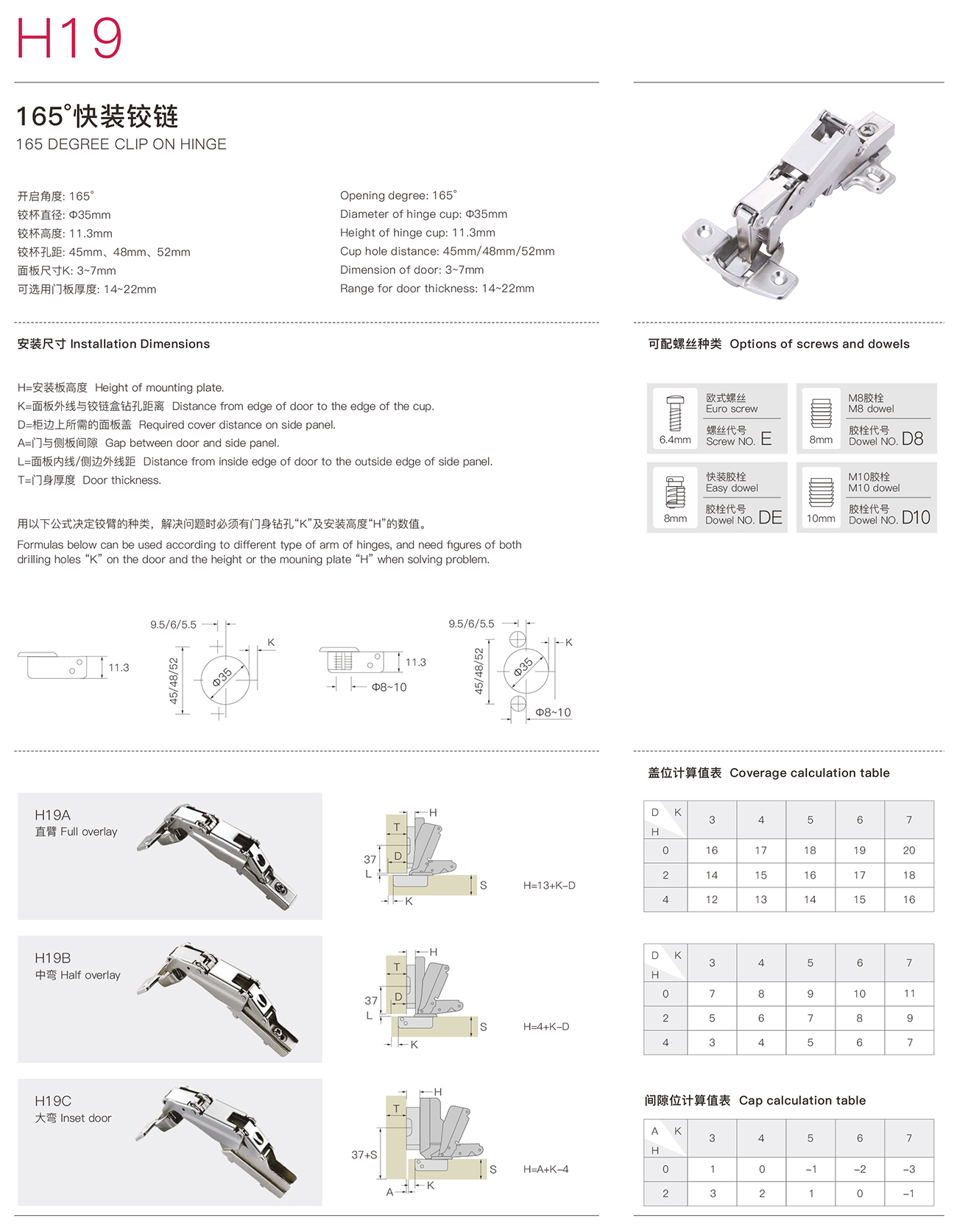 H19 165°快裝鉸鏈