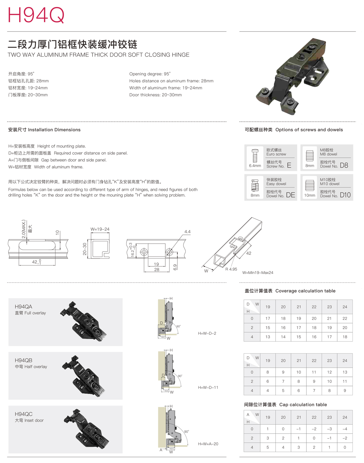 H94Q二段力厚門鋁框快裝緩沖鉸鏈
