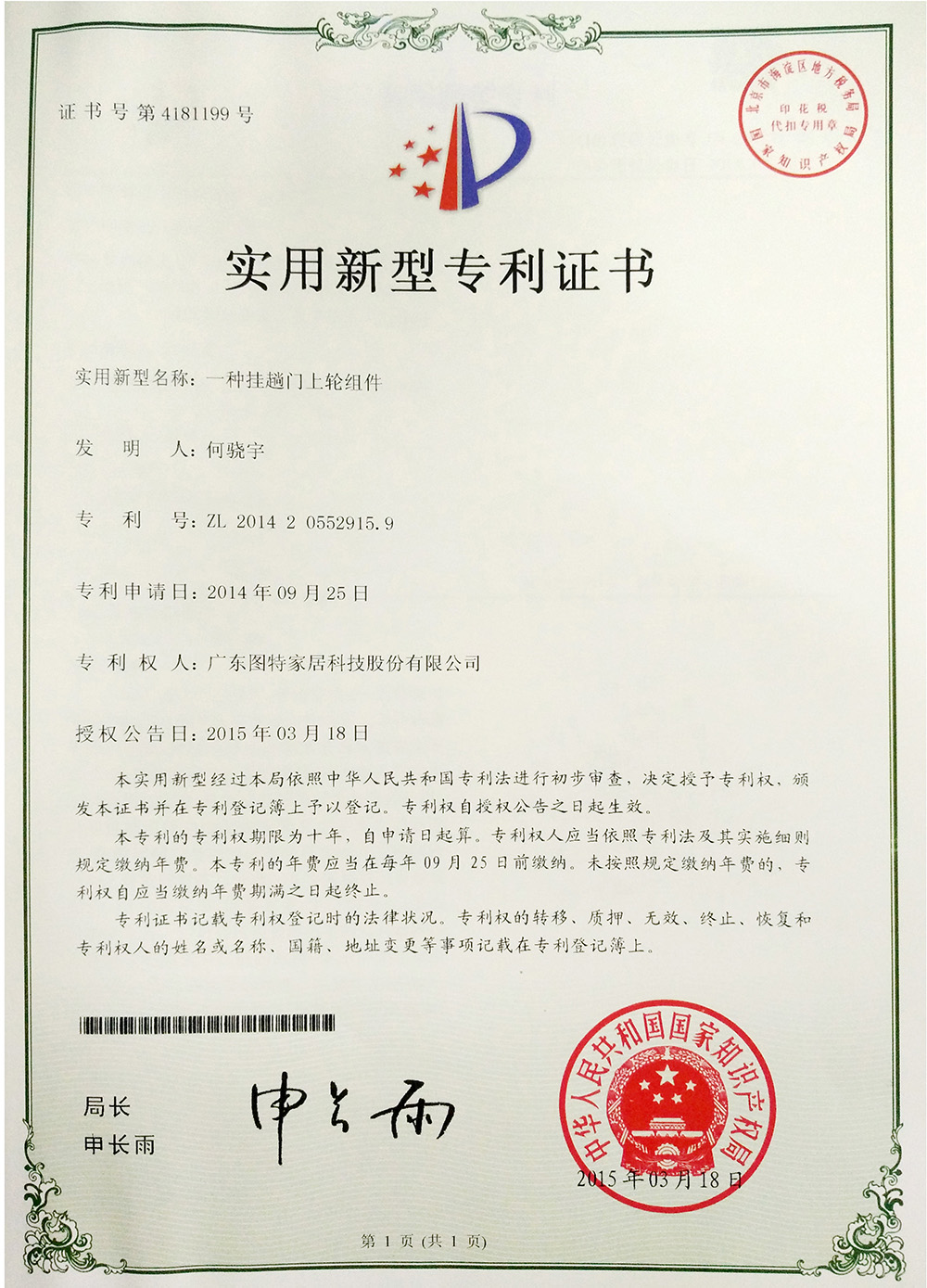 實(shí)用新型專利(一種掛趟門上輪組件)