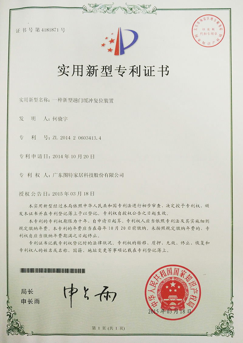 實(shí)用新型專(zhuān)利(一種具有防脫復(fù)位功能的柜門(mén)緩沖器)