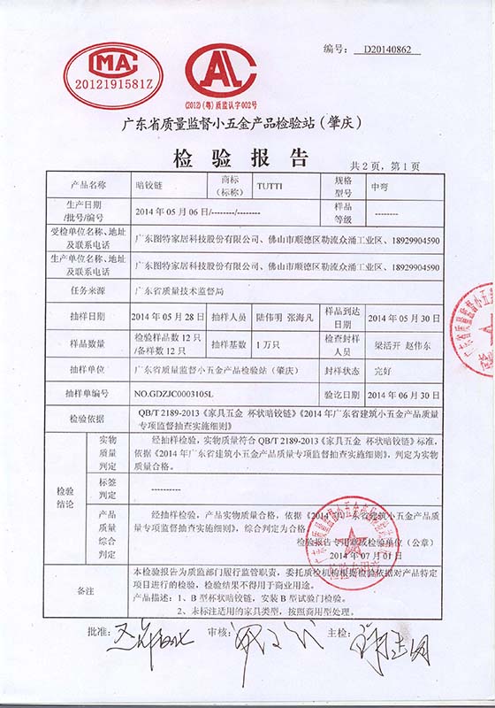 廣東省質(zhì)量監(jiān)督小五金產(chǎn)品檢驗(yàn)站(肇慶)檢驗(yàn)報(bào)告