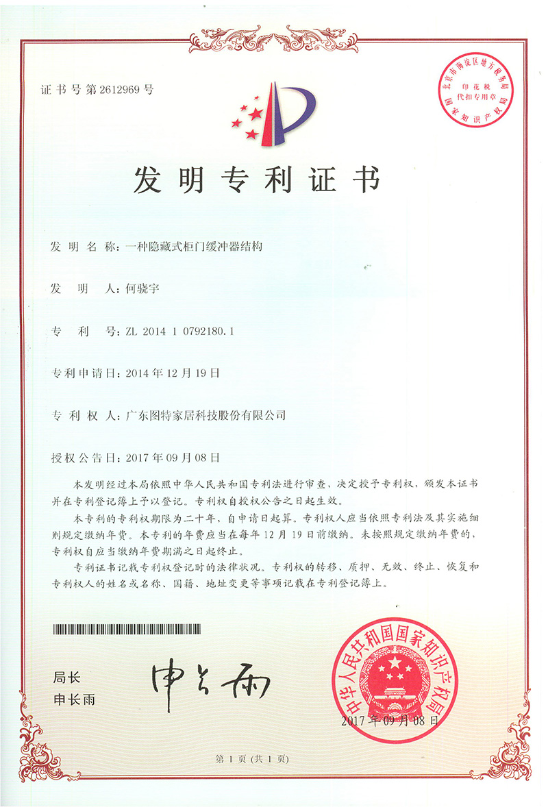 發(fā)明專(zhuān)利(一種隱藏式柜門(mén)緩沖器結(jié)構(gòu))