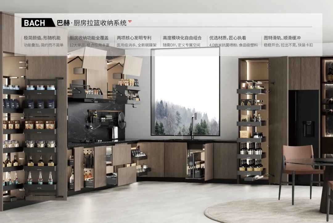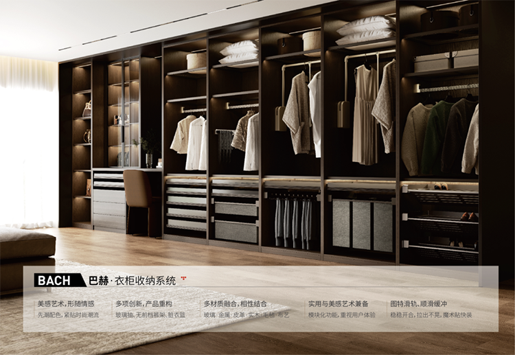 巴赫全屋收納系統(tǒng):以模塊化設計為核心,搭配抗菌環(huán)保材料與靈活布局方案,重新定義了櫥柜與衣柜收納的“高定標準”,成為展區(qū)人氣爆款。
