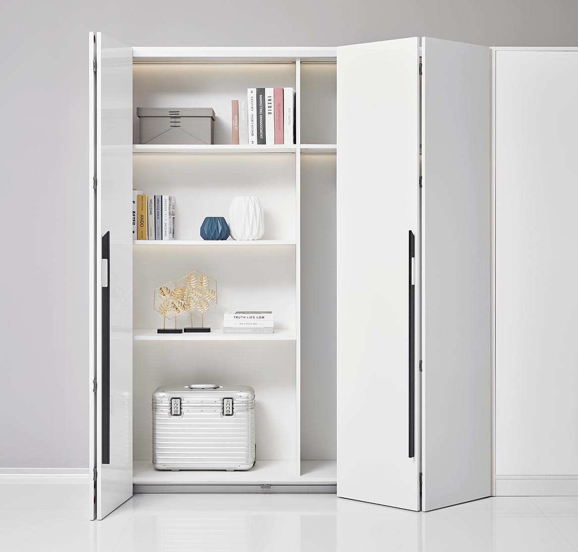臥室是移門五金最開始應(yīng)用的地方,也是使用最頻繁的地方。既可以選擇比較高的外掛趟門,增大柜內(nèi)收納空間,保持整體觀感。T902折疊門因為可以實現(xiàn)全打開,不影響柜內(nèi)收納應(yīng)用,轉(zhuǎn)角位置也能使用。