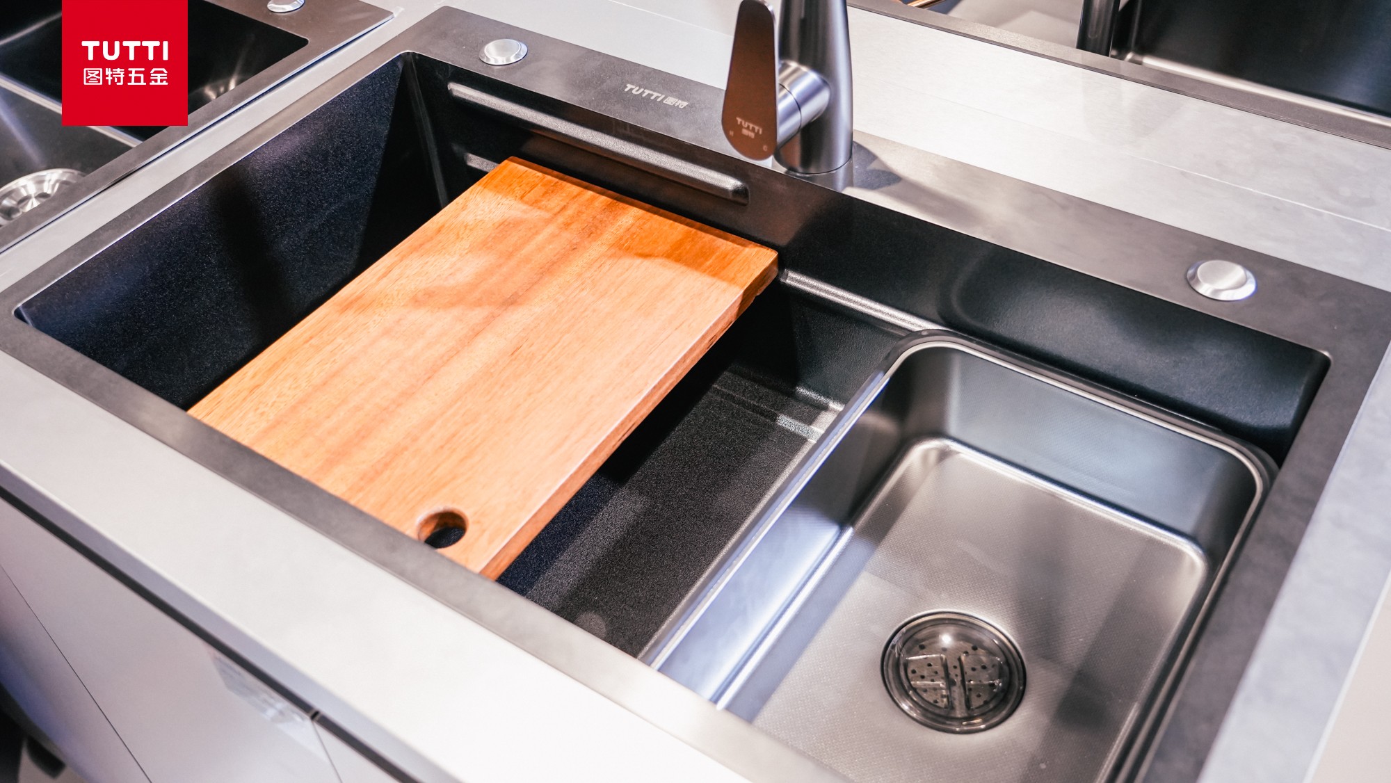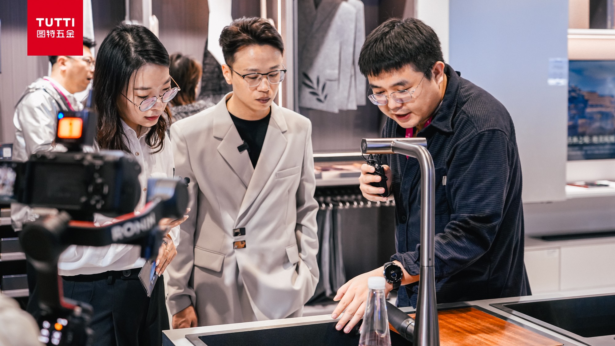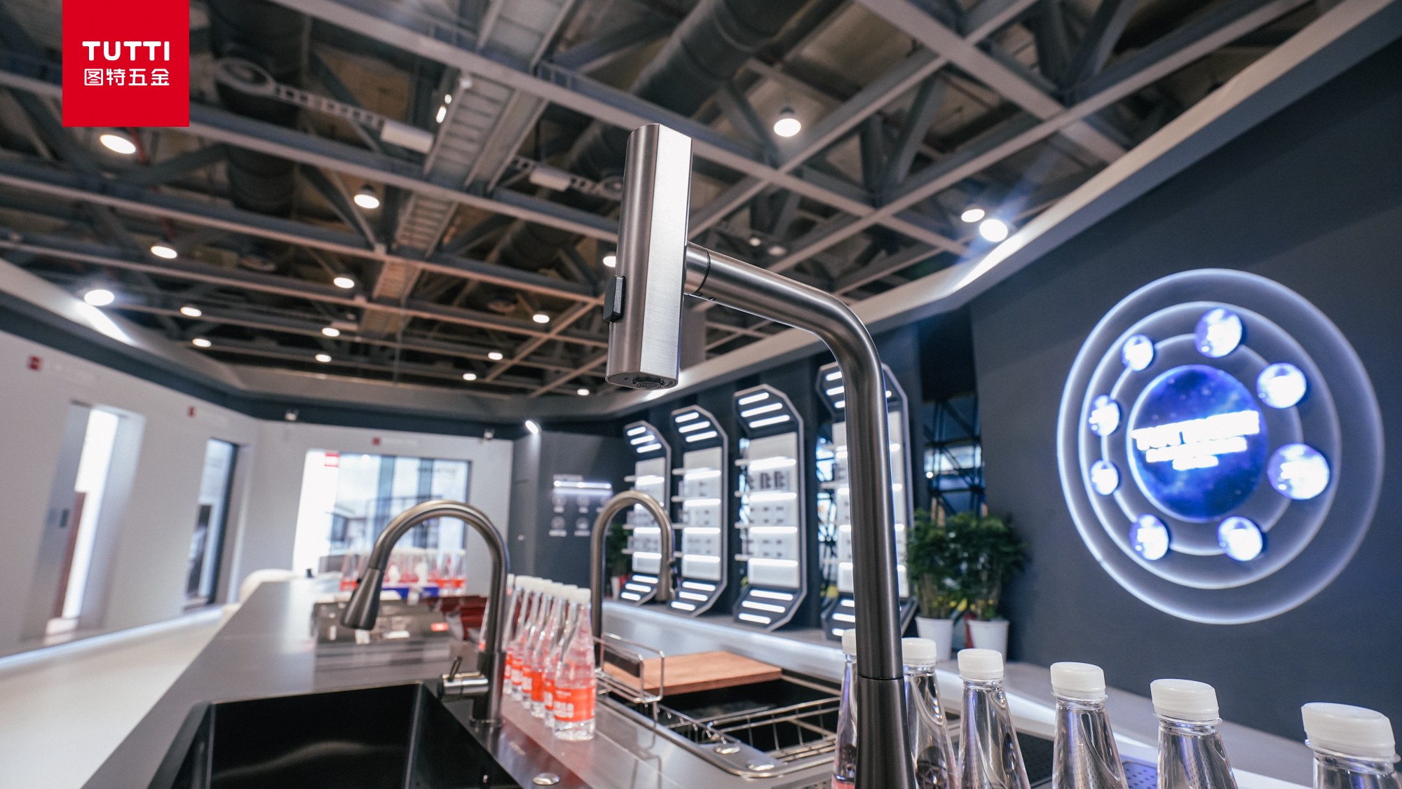 中島臺(tái)上,圖特五金水槽龍頭新品類產(chǎn)品產(chǎn)列有序,佇立著多款龍頭產(chǎn)品,獨(dú)特精致引起圍觀者絡(luò)繹不絕。